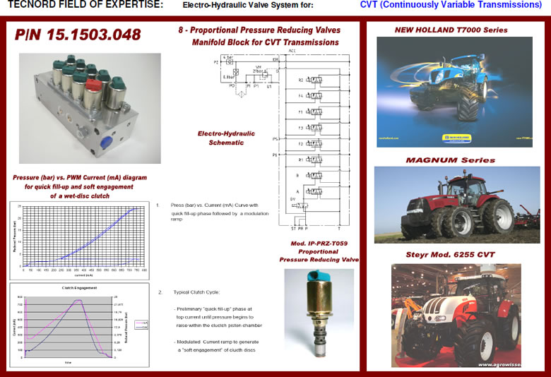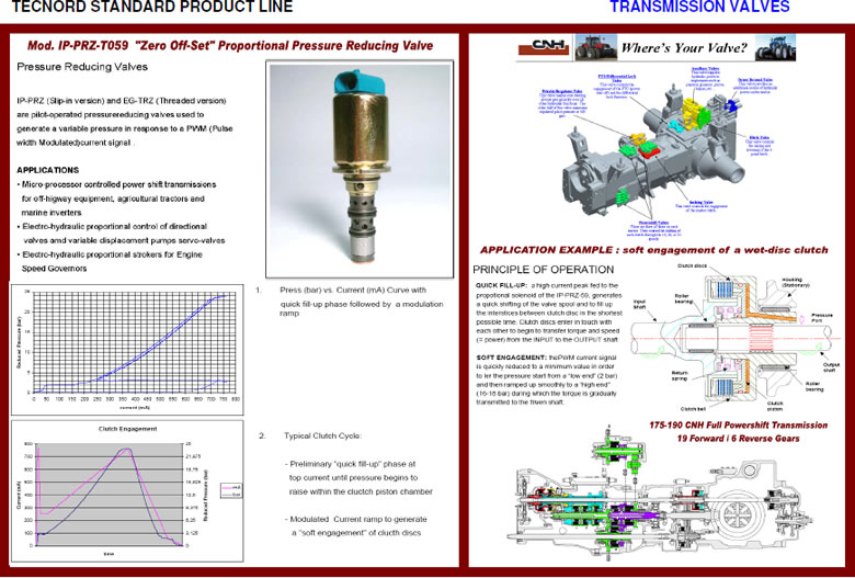 EV-PRZ螺纹插装阀,可根据各制造厂商变速箱的控制原理和结构尺寸,来设计和制造其各种电液一体化动力换档控制系统,对原机械换挡变速箱进行电液一体化的换挡技术升级更新。国内外应用厂家有ZF,CASE,CLARK,CNH,山推,一拖等。